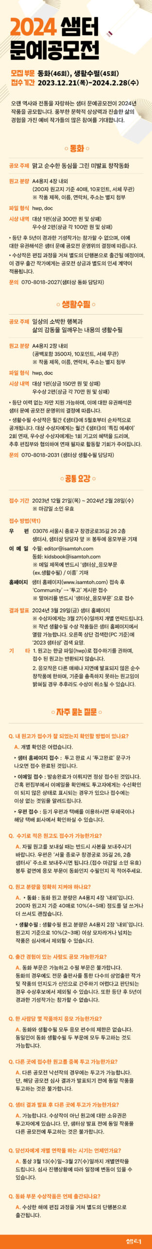 “2024 샘터 문예공모전 | 대상 150만 원”에 대한 5개의 생각